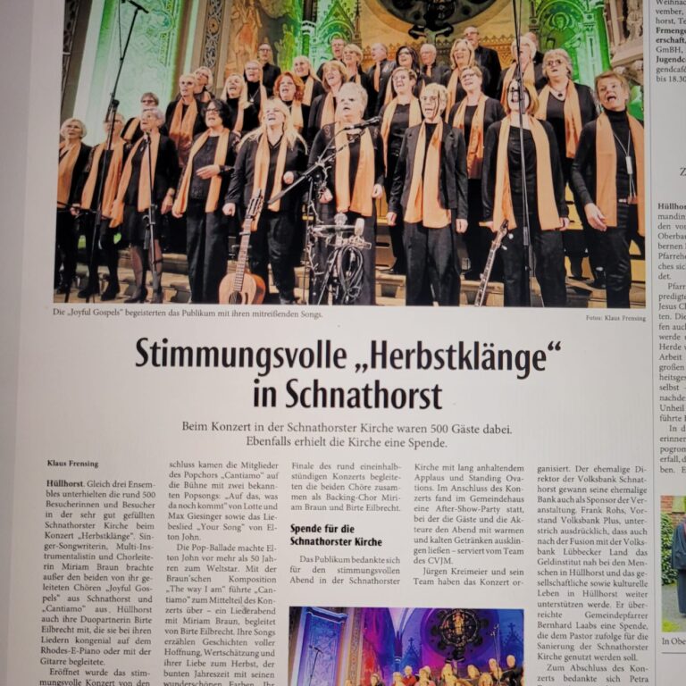 Am Freitag, den 14. November 2025 um 19 Uhr findet unser großes Jahreskonzert in der evangelischen Kirche Schnathorst statt.