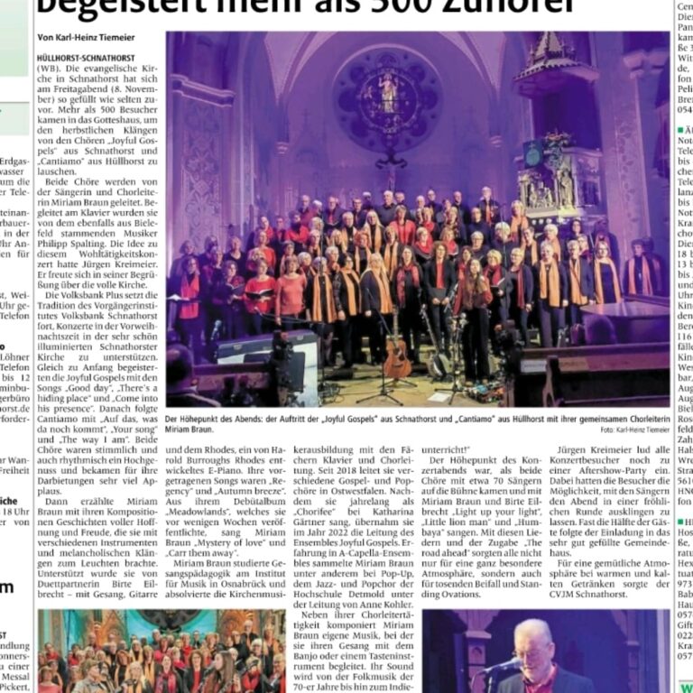 Am Freitag, den 14. November 2025 um 19 Uhr findet unser großes Jahreskonzert in der evangelischen Kirche Schnathorst statt.